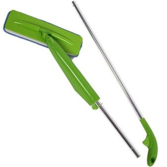 There is a more interesting and improved model with a spray. The built-in sprayer during the cleaning process applies detergent to the surface to be cleaned, this saves time, since there is no longer a need to apply a cleaning solution to the glass at the beginning of the process. This mop is also suitable for cleaning the floor, but it has one drawback - a model without rubber sgon. The price is quite affordable.