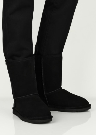 Consumers say that uggs are very warm, the sole does not slip. Even with a large size on the foot, they look neat. Look stylish and with a fur coat, and with a down jacket.