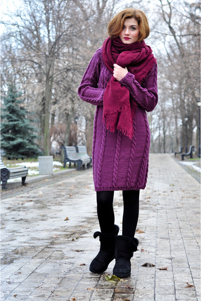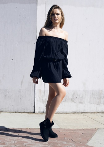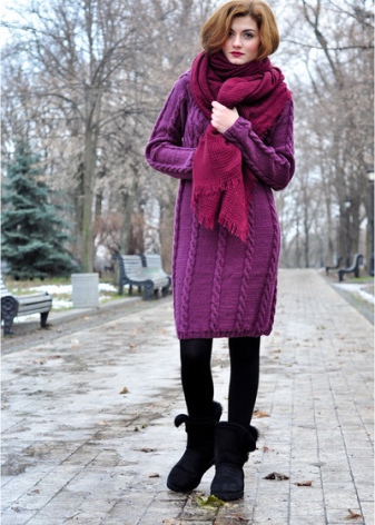 Dark shoes will look great with knitted or crocheted dresses, as well as long sweaters with long sleeves. It is recommended to choose a more gentle and feminine outfit. It is not necessary to give preference to too long dresses. The ideal is the length to the knee and above.
