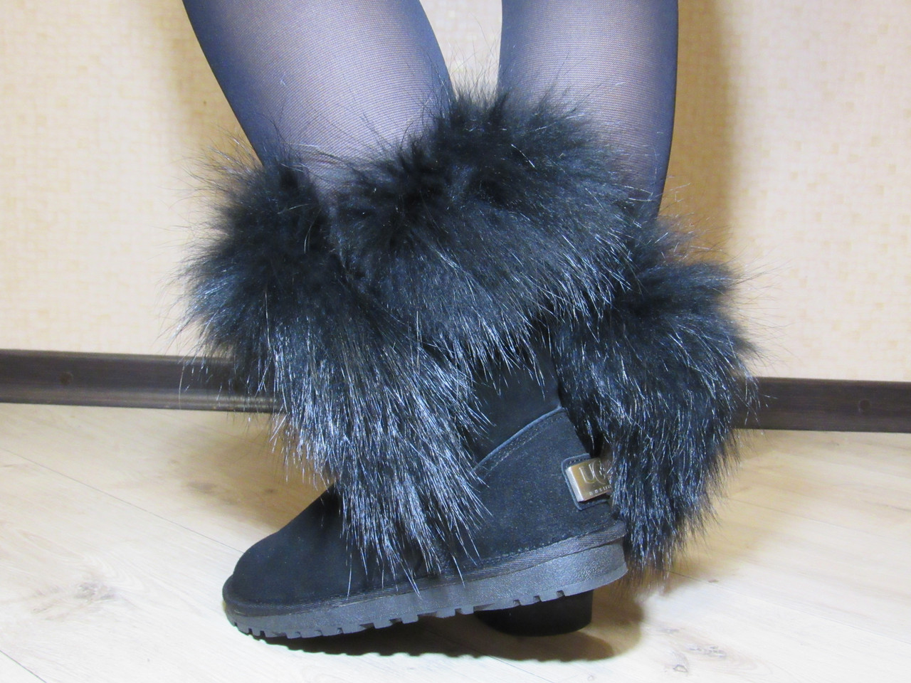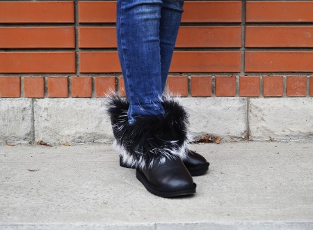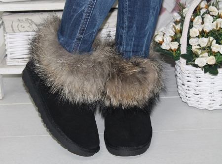 Leather products are considered to be the most practical and durable. Such shoes do not require special care and for a long time retains its attractive appearance. Leather models of black color with fox fur or raccoon look very expensive and stylish.