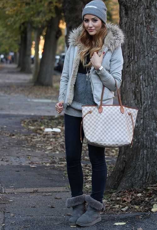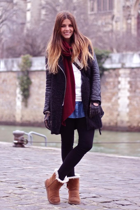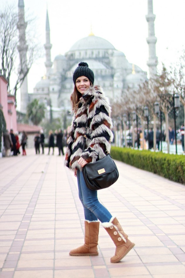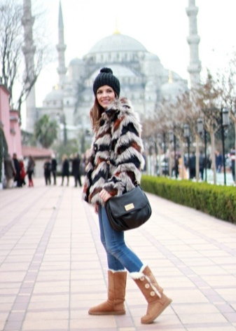 Uggs that can be worn with or without cuffs look originally. Having bought such boots, you actually become the owner of two pairs at once: without the cuffs, they will fit the classic winter outerwear, and with the top turned away - for a sporty style. As an ornament in such models, designers use both natural and artificial fur.