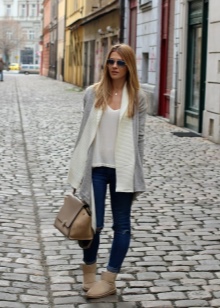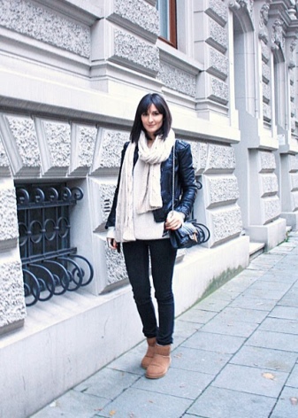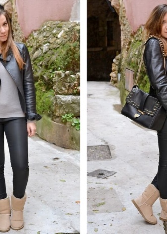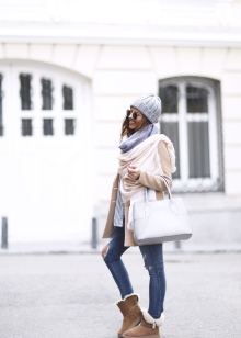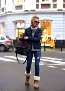 Uggs are perfectly combined with dresses and skirts.For such a tandem you just need to choose the right tights. Very well and originally look models with patterns and ornaments. Clothing is better to choose a more free cut. Uggs with pencils and fitted dresses or skirts are completely incompatible.
