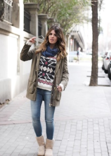 - warm inflated jackets and trendy parks (parks with a fur hood will look more harmonious);