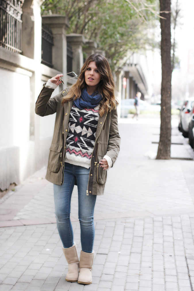 - loose military jackets (if the uggs are brown, green or khaki);