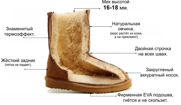 As a rule, uggs are warmed with the help of natural or artificial fur. You should not choose a model with synthetic insulation, as in such shoes your legs can stretch and will not breathe.