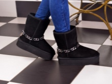 A well-known brand produces high uggs on a thick platform with strings on the back of the shaft. Stylish shoes are more like winter boots.