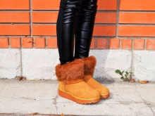 The most common today are high-quality products, complemented by fox fur, raccoon and arctic fox. Uggs with rabbit fur are rarely found. Very popular among women of all ages are gentle couples who have sheepskin finish (this material is also used for warming).
