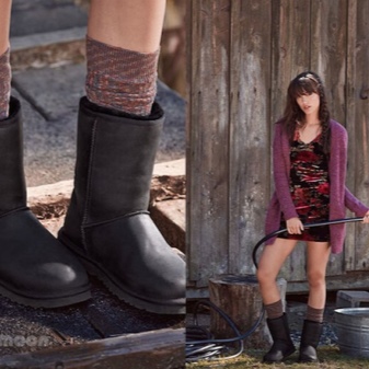Many models of uggs imitate the look of genuine leather. Although the models are made exclusively from sheepskin, they are distinguished by the fashionable appearance of leather boots, and are not afraid of wet snow.