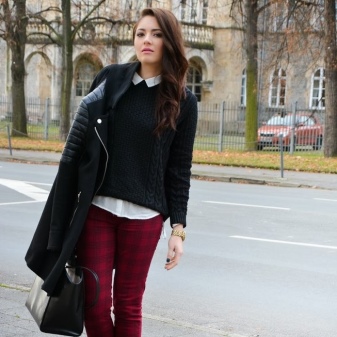 Recommended to complement the appearance of accessories. A good solution would be a voluminous motley scarf, a backpack with the logo of your favorite musical group, a hat with an original print.