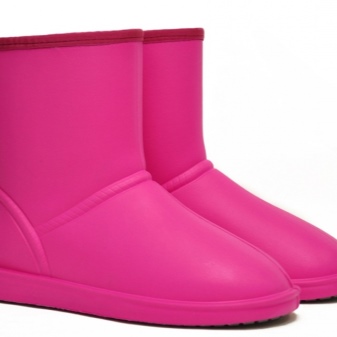 The range of rubberized women's products is quite diverse, so that each girl will be able to choose the most suitable option for themselves. Uggs differ from each other in their appearance - some models are decorated in bright shades, while others are dark. Some can stand out with the help of decorative inserts and prints, and the rest show conciseness.