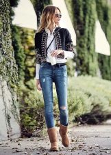 Choosing such shoes, you should be discreet in choosing the rest of the clothes. Rhinestones and stones on the boots will make them self-sufficient and without fancy clothes.