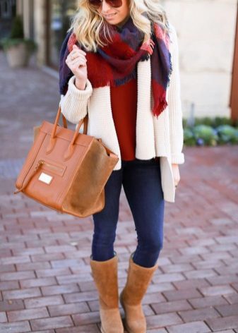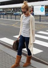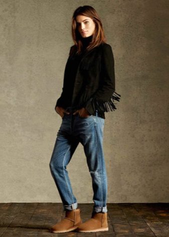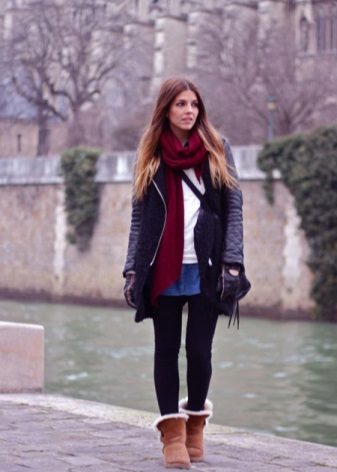 Before you pick up the whole image you need to decide on the length of the ugg itself. Long models go well with a dress, skirt or tunic. But short, on the contrary. Shorts, pants or jeans are best for short ugg boots.
