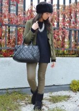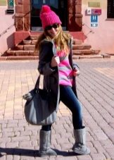 It all depends on the design and style of outerwear and the image as a whole. You can support the style ugg and wear a hat with earflaps, decorated with fur, or the usual knitted hat and a bright scarf.