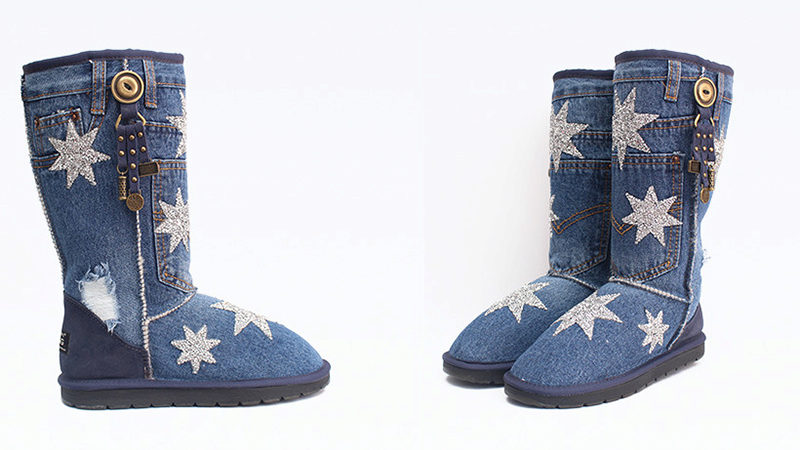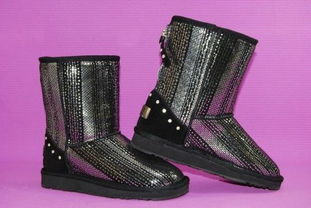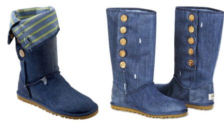 Another fashion trend for those who love uggs. This is a denim model. They are also divided into winter and summer. As for the decor of such an unusual model, it is typically denim. Rivets, rhinestones, shabby accessories and stitches.