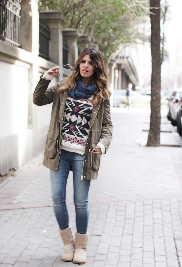 Uggs with folk motifs fit to knitted dresses, sweaters with deer or Irish sweaters. They can also be worn with a skirt draped in pleats or corduroy trousers. In addition to the folk uggs will be knitted tights.