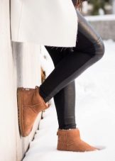 Uggs-moccasins with fur are in great demand. This option is only suitable for warm weather, although it has warm sheepskin fur inside and fur trim outside. They are put on their bare feet.