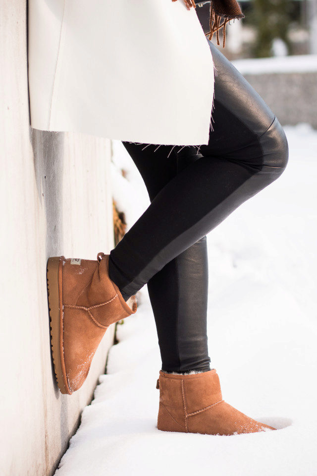 Many women of fashion give preference to leather uggam, which consist of two layers. Warm sheepskin is represented inside the shoe, and genuine leather is used for the upper layer. Such ugg boots are more practical because the skin is not afraid of moisture. In leather models, you can walk in the rain and in the snow.