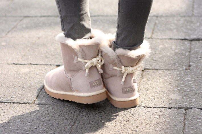 Stylish uggs with fur are perfect for the embodiment of fashionable bows in street or casual style.