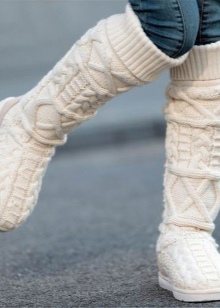 Very interesting look original products made of warm wool yarn. High knitted models are recommended to wear indoors or in warm and dry weather. Such products do not protect ladies' feet from damp and slush at all.