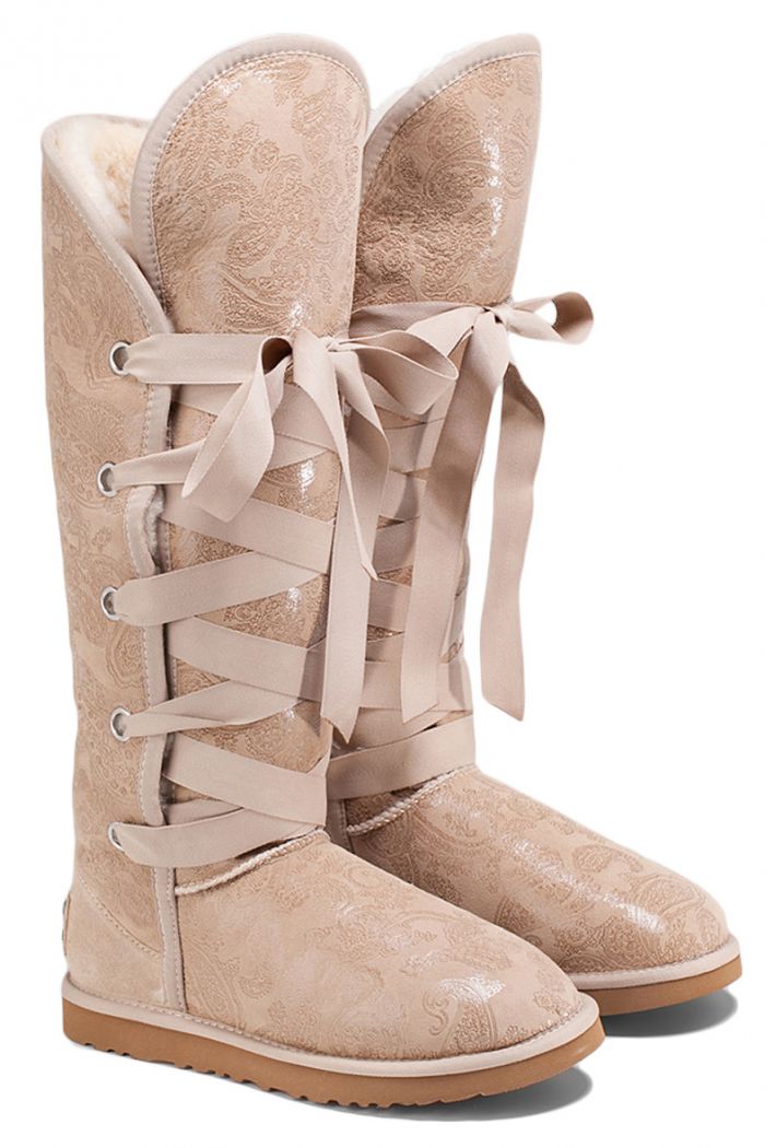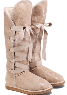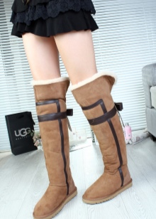 If you want to look stylish and feminine, then you should pay attention to the original ugg boots. Such models, as a rule, reach the mid-thigh and look spectacular on the leg. From such products should refuse full ladies.Thick high sheepskin shoes will make your legs bigger and less elegant.