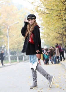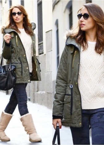 High models are not combined with all types of outerwear. Such shoes will look harmonious with loose coats, cropped sheepskin coats, puffed jackets and casual parks. Boots will be perfectly combined with a down jacket, the length of which does not reach the knee.