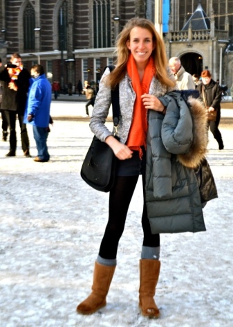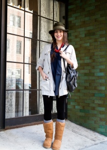Neutral uggs calm gray will be a good addition to almost all dresses. If you put on leggings and jeans of similar colors under such shoes, then such an ensemble should be diluted with a bright blouse or sweater.