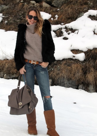 - It is recommended to choose jeans with a narrowed cut so that they can be easily tucked into uggs.
