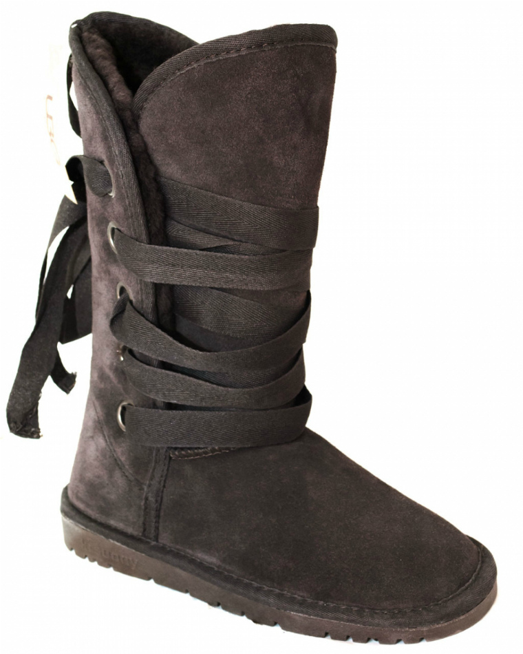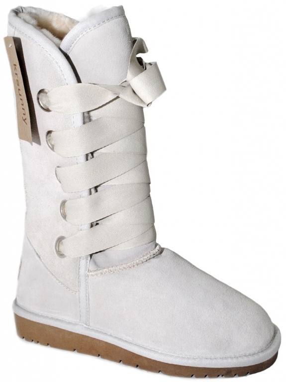 Classic models are made of warm sheepskin. The footwear is equipped with a comfortable flat sole. A high bootleg is not complemented with buttons or clasps.