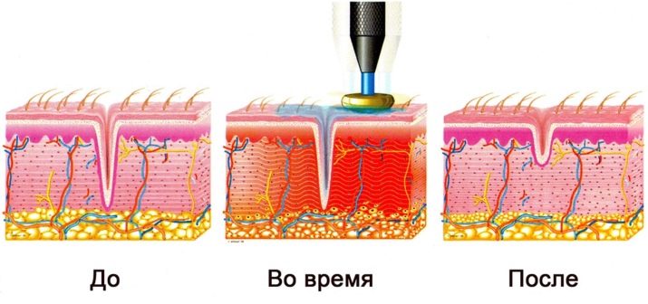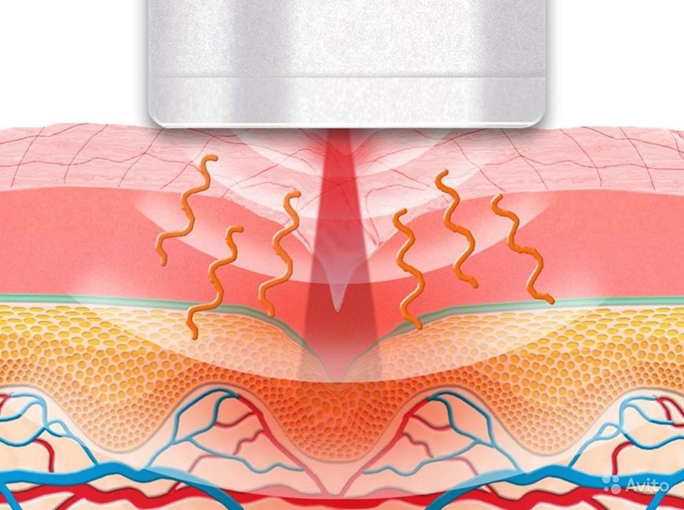 The mechanism of action here is as follows: human skin is heated to a predetermined temperature, as a result, fibrillar fibers become hard and are transformed into spirals with a rather compacted skeleton - it is responsible for the connection of cells and causes the skin to be elastic from the inside. As you know, collagen is a protein; therefore, under the influence of elevated temperatures, it collapses, and the skin becomes tightened.