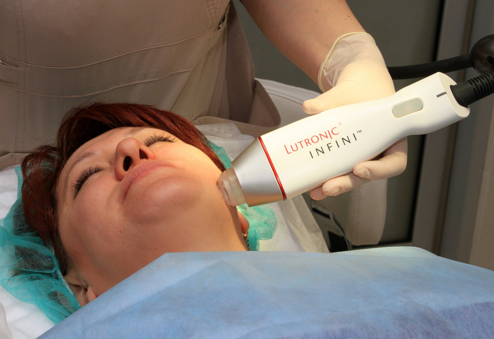 Not less popular is Infini for 3D RF lifting, thanks to which you can remove a second chin, tighten sagging cheeks and reduce wrinkles. This device is also effectively fighting scars and scars, but only a specialist can decide how justified the use of this device in each case.