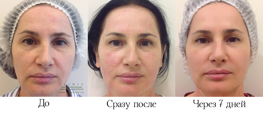 Before the procedure, the cosmetologist offers to take a photo in order to compare the results “before” and “after”. According to the clients immediately after the procedure, many had a positive effect.
