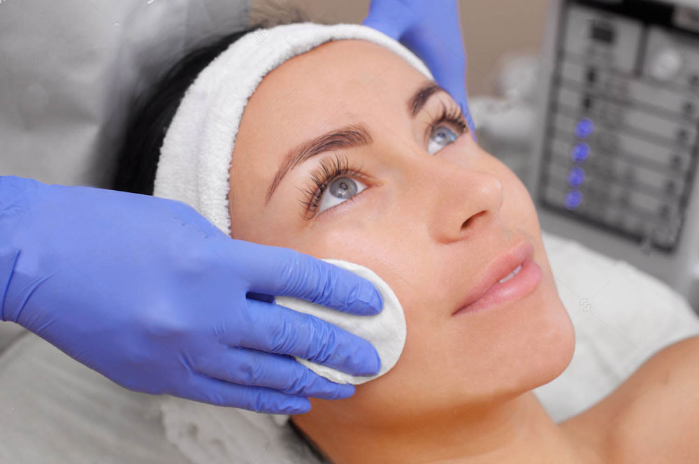 - It is necessary to remove the makeup, and not just superficially, but to carry out a deep cleaning. Then we clean the face, neck and decollete.