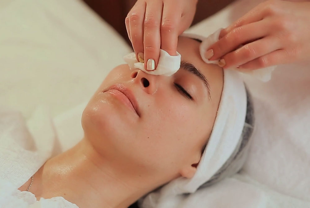 - Having got rid of cosmetics, the master applies a massage basis. According to the standard, essential oils are used. Before use, each oil sample is carefully selected depending on the skin of the face, its type and thickness of the epidermis, and a possible allergic reaction is also detected.