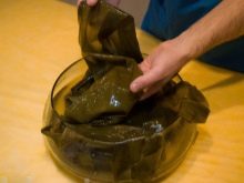 Wrapping can be carried out only on a cleansed body, so first you need to take a shower or a bath, preferably with sea salt, be sure to apply a scrub, optimally with salt. If you have the opportunity to visit the sauna, this will only enhance the effectiveness of the procedure.