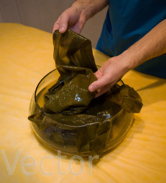 - Cold wrapping. In order to prepare an effective composition, you should take about 100 g of kelp and soak for 3-4 hours in cool water. Soaked algae are applied to the body for 40 minutes, additional warming is not required. As soon as the time of the procedure expires, you need to take a refreshing shower and rub care or anti-cellulite cream. Keep in mind that from one procedure you will not notice any visual effect. Wraps should be carried out in a course of 10-20 sessions, while their frequency should be 1-2 per week. In order to enhance efficiency, massage can be performed before manipulations, but it should be light, you should not be zealous here. The skin should be heated, but not pounded.