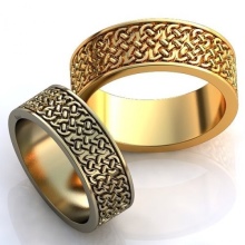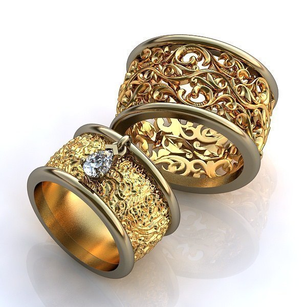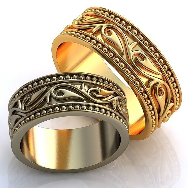 If you want to buy a more original jewelry, then you should look at models with wedding patterns. Today brides very often choose such options. The surface of such rings allows you to place large and noticeable patterns on it.