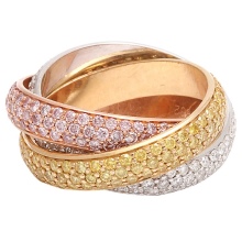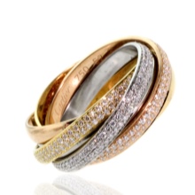 Demanded today and models in the style of French classics. Back in 1924, the famous jewelry house Cartier made an amazing ring called “Trinity”. It has reached our days and is a real embodiment of the classic style. This popular model is an interweaving of thin rings of pink, white and yellow gold. These elements personify trust, loyalty and love.