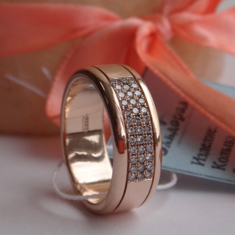 The wide rings themselves look very expensive and beautiful. Such products give a lot of imagination to jewelers, because they can be decorated with absolutely any elements: engravings, patterns and miniature pebbles.