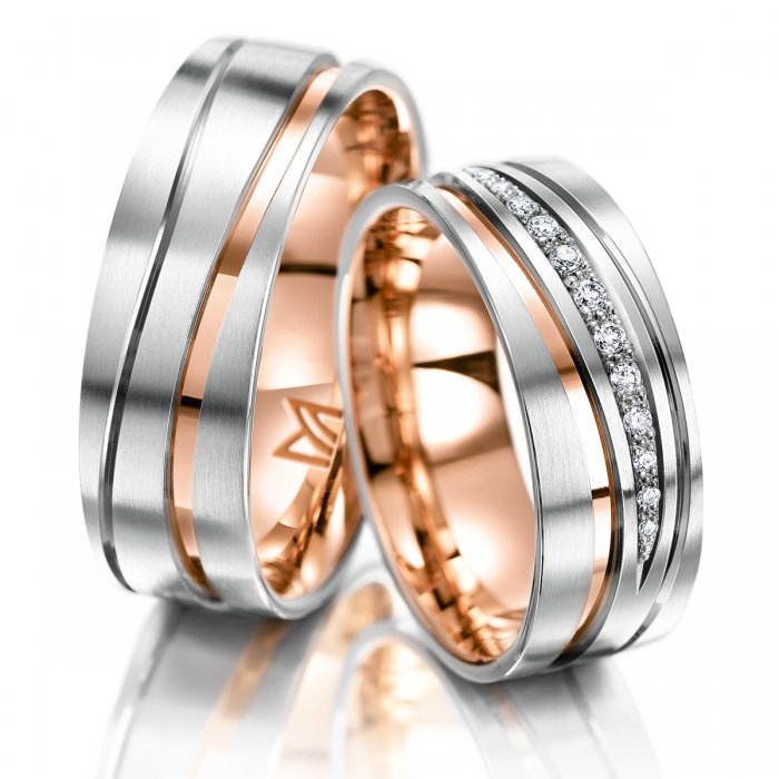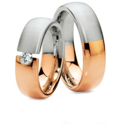 Nowadays original rings of unusual materials are very popular. You can purchase paired products not only from yellow, but also from pink, white and even green gold. Such metal alloys are natural. Rose gold takes on its delicate shade after some copper is added to the yellow metal. Women's specimens of white gold include platinum, nickel, and palladium. Green precious metal becomes such after adding potassium.