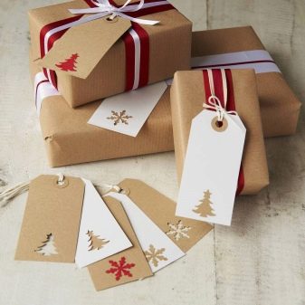 Beautiful wrapping paper and bright ribbons help to create a holiday mood. The final touch is personalized New Year tags. The tradition of decorating gifts with labels with signatures came to us from Europe recently, but immediately fell in love with the Russians.