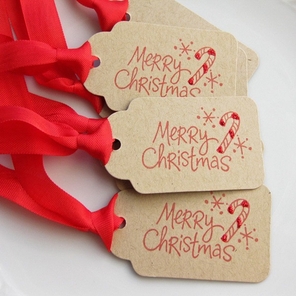 Ways of attaching tags to a gift box may be different. The most popular method is the use of ribbon, decorative twine or strips of lace fabric.