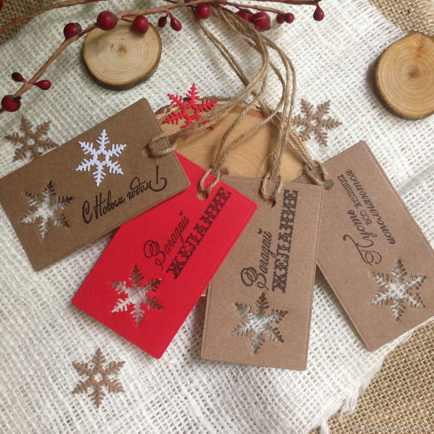 You will find a step-by-step guide on making tags for New Year's gifts in the following video.