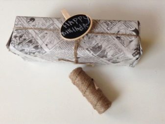 - This option is suitable for those who did not have a gift paper at hand. In this case, you can take craft paper or even a newspaper, make a bundle, tie it with a cord or thread, attach a note - and the vintage packaging is ready!