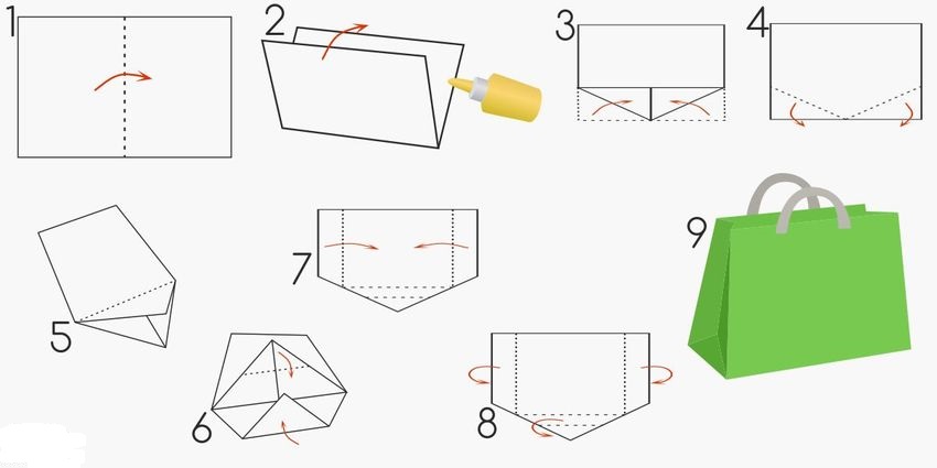 - Paper gift bag. For its manufacture, we need parchment (thick paper) and a box.We take a box of such volume, what we want to see our package, we wrap it with paper and with the help of glue we join the sides together. We also do the bottom of the package. Then we take any paint and decorate the package, get the box - the package is ready.
