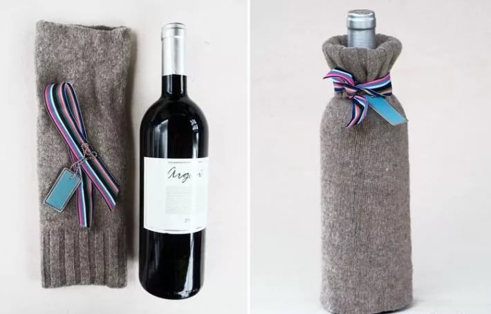 - Pack a bottle of good alcohol in a sleeve from a sweater or shirt, tie it with a beautiful string.