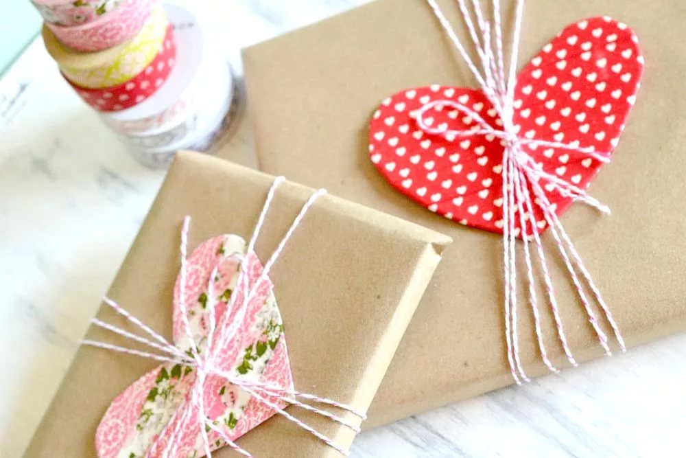 - Wrapping or craft paper is a safe, low-cost, eco-friendly material with which many ideas can be implemented. The twine, tapes from the atlas, figures from a tree or metal will serve as an excellent decor. You can use a newspaper, supplemented with a color ribbon.