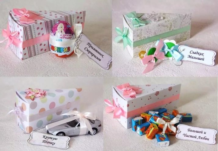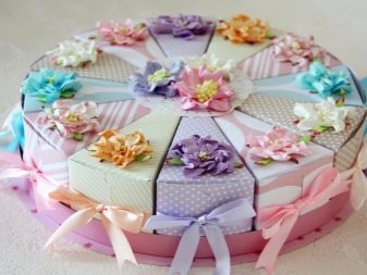 But with the internal components of the cardboard cake, the question is much more complicated. Not always the performer of the gift, having prepared the base, knows what to put inside each bonbonniere. Although there are a lot of ideas for filling empty boxes.