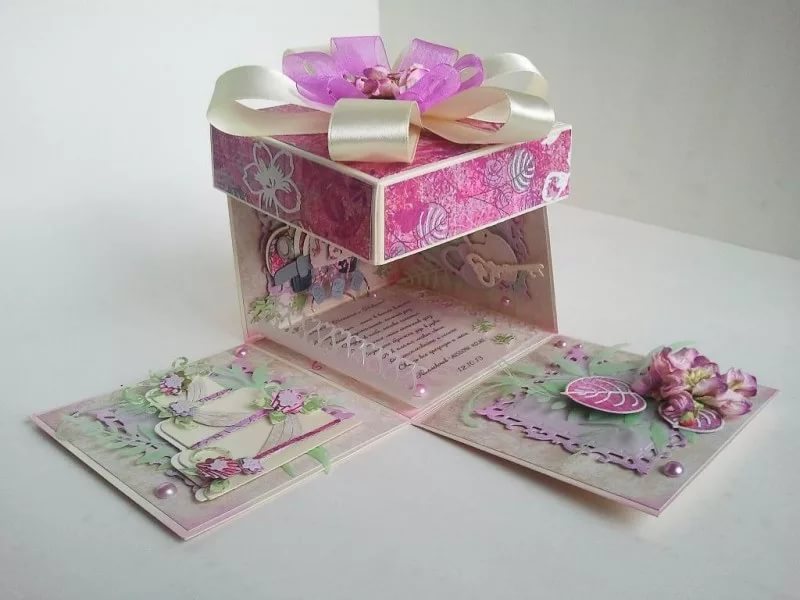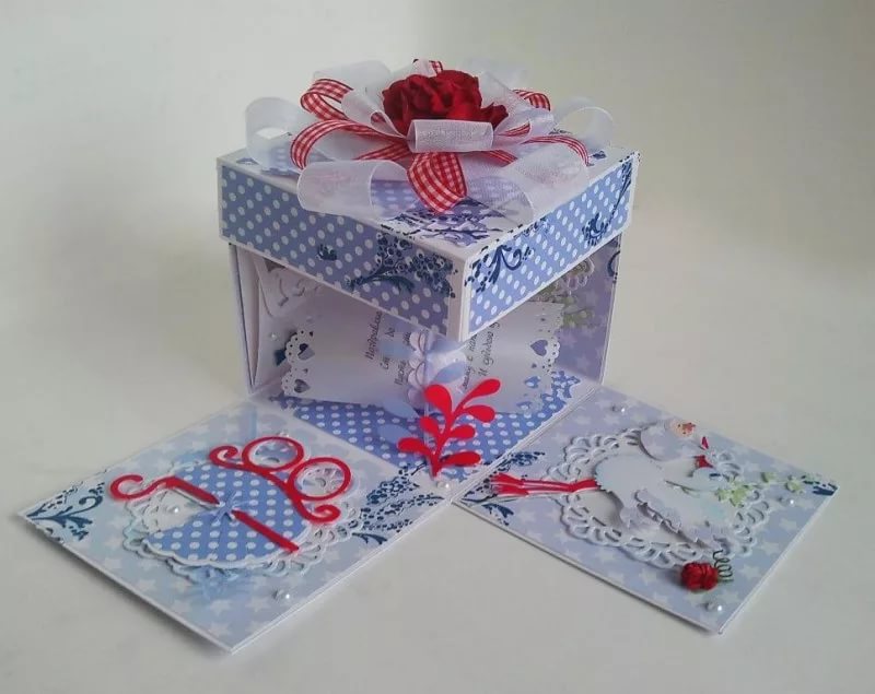 Today, you can get inspiration for creating an exclusive surprise box in any source. And if you visit a specialized scrapbooking shop and carefully familiarize yourself with the proposed decorative elements, you will be able to create and make a unique masterpiece yourself.