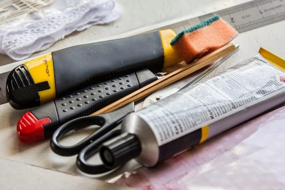 The proposed list may be a question regarding the plastic spatula. It is needed to create neat cardboard bends. As an analogue, it is proposed to use blunt-tip scissors.
