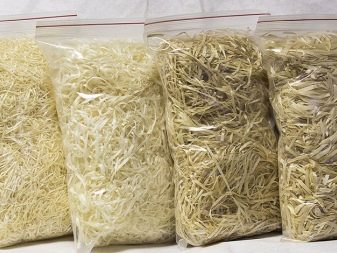 Those who are not looking for simple solutions when making gifts, use wood chips or sawdust as a filler for boxes, as well as straw or fiber from palm leaves.Wood chips, of course, looks expensive, it is environmentally friendly, and therefore is considered one of the best options. However, she loses the paper filler on the wealth of colors and design range. Hay is an amateur choice, suitable for a limited type of gift.